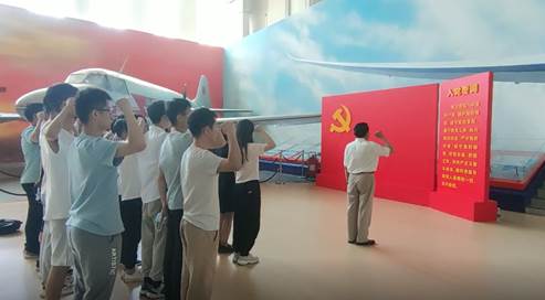 “我志愿加入中国共产党......为共产主义奋斗终身,随时准备为党和人民牺牲一切,永不叛党。”参观尾声,公司党委书记张德生带领全体新党员在党旗下高举右手,庄严宣誓。张书记表示:通过这次活动,希望大家在今后的学习和生活中牢记入党誓词,做到履行党员义务、严守党的纪律,切实发挥共产党员的表率和先锋模范作用。未来的希望寄予青年,新时代需要先进青年的努力和奋斗,同学们作为年轻的共产党员,更应该立志报国,“勇担当、须勤奋、挑大梁、担大任”,为建设社会主义现代化强国、为实现中国梦而拼搏。