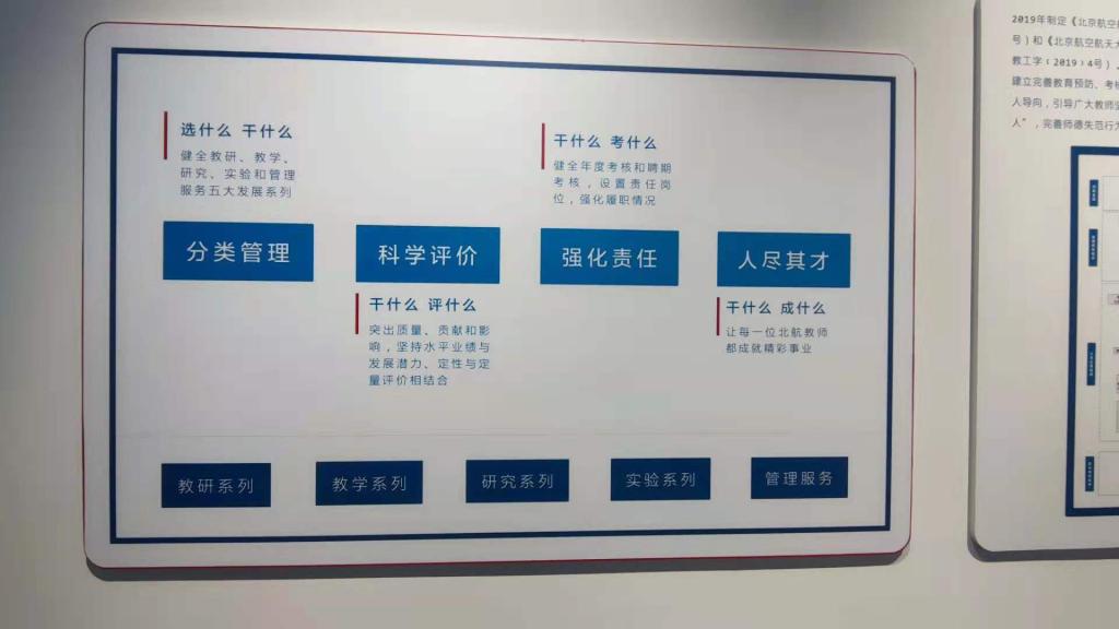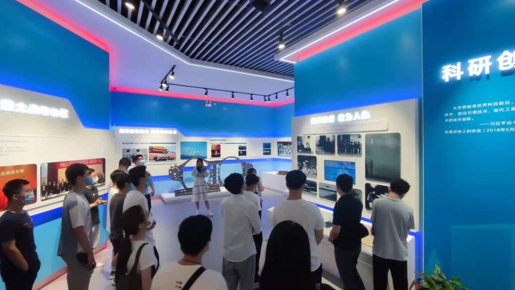 “今日北航”展览共分为“团队建设”、“人才培养”、“教师队伍建设”、“科研创新”、“国际交流合作”以及“党的建设”六大板块,每个板块都通过可交互式的新媒体方式,列举详细数据向参观者展示着北航的建设和发展取得的辉煌成果和伟大成就。