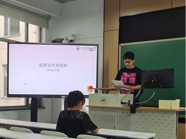 北航研究生会主席团代表张伟业代表校研究生会发言,他对英国威廉希尔英文官网研究生会在思想引领、组织改革、权益维护、学术研讨、文体活动等方面开展的工作表示肯定,并对英国威廉希尔英文官网研究生会的改革创新表达美好祝愿。